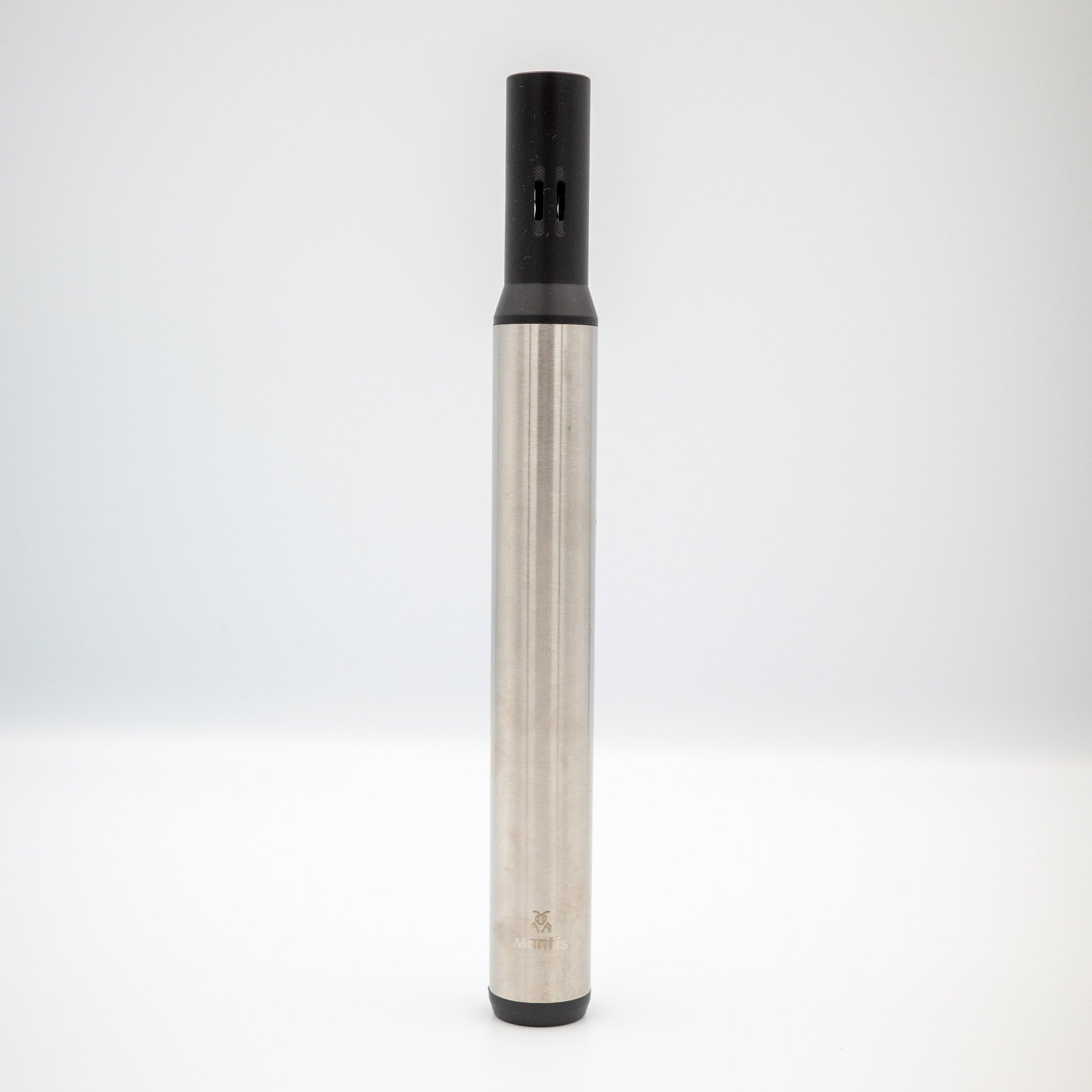 This lighter is a sleek and sophisticated tool designed for the discerning cigar enthusiast. Its cylindrical, long, and slim profile (19 cm by 2.5 cm) is crafted from high-quality steel, giving it a substantial feel in the hand that exudes durability and luxury. The single jet flame, perfect for precise lighting, is activated effortlessly by sliding a smooth button on the front forward, ensuring a seamless and intuitive user experience. At the base of the lighter, a rotary adjustment disc allows for precise control of the flame intensity, adding versatility and convenience to its functionality. This lighter combines elegant design with practical features, making it an essential accessory for any cigar aficionado.