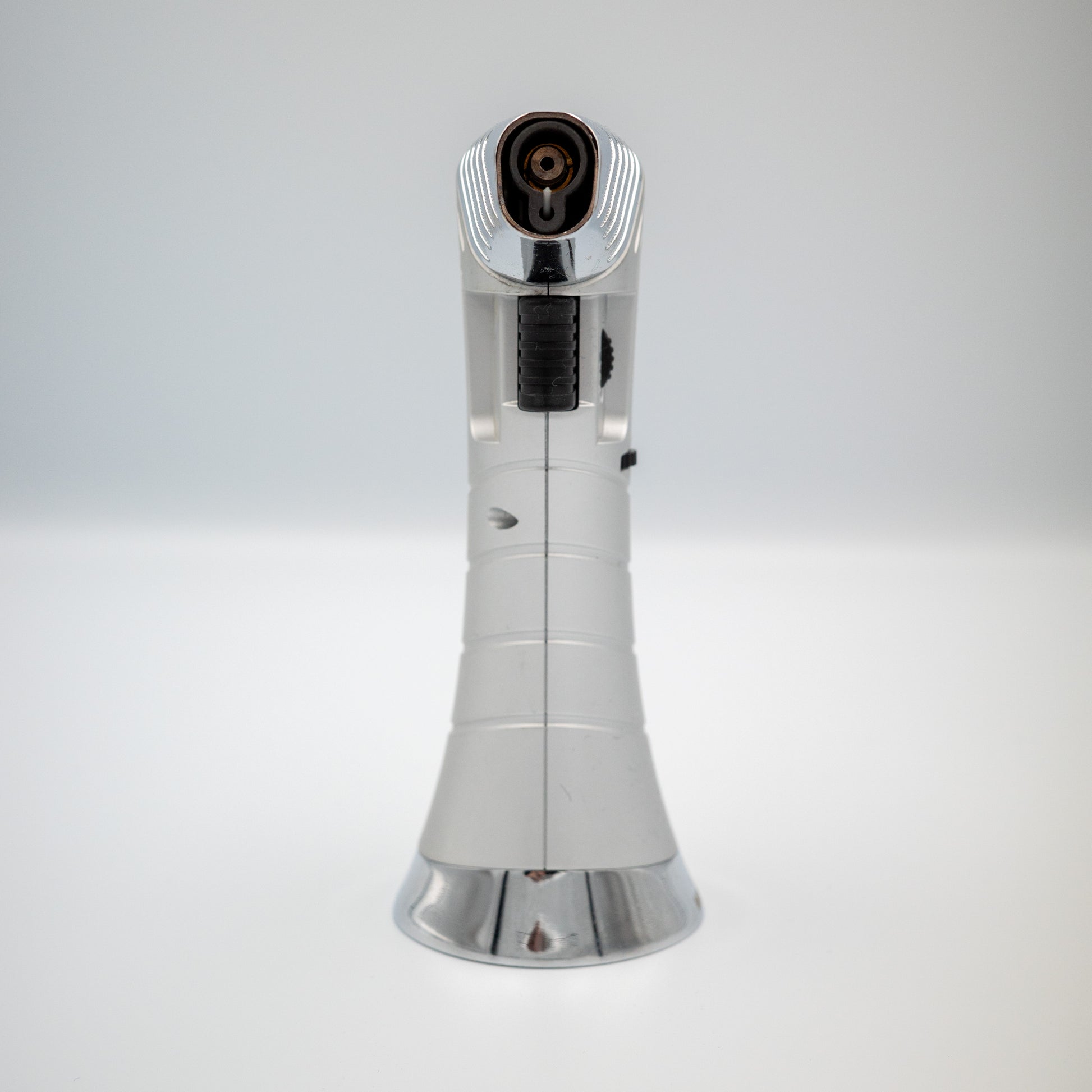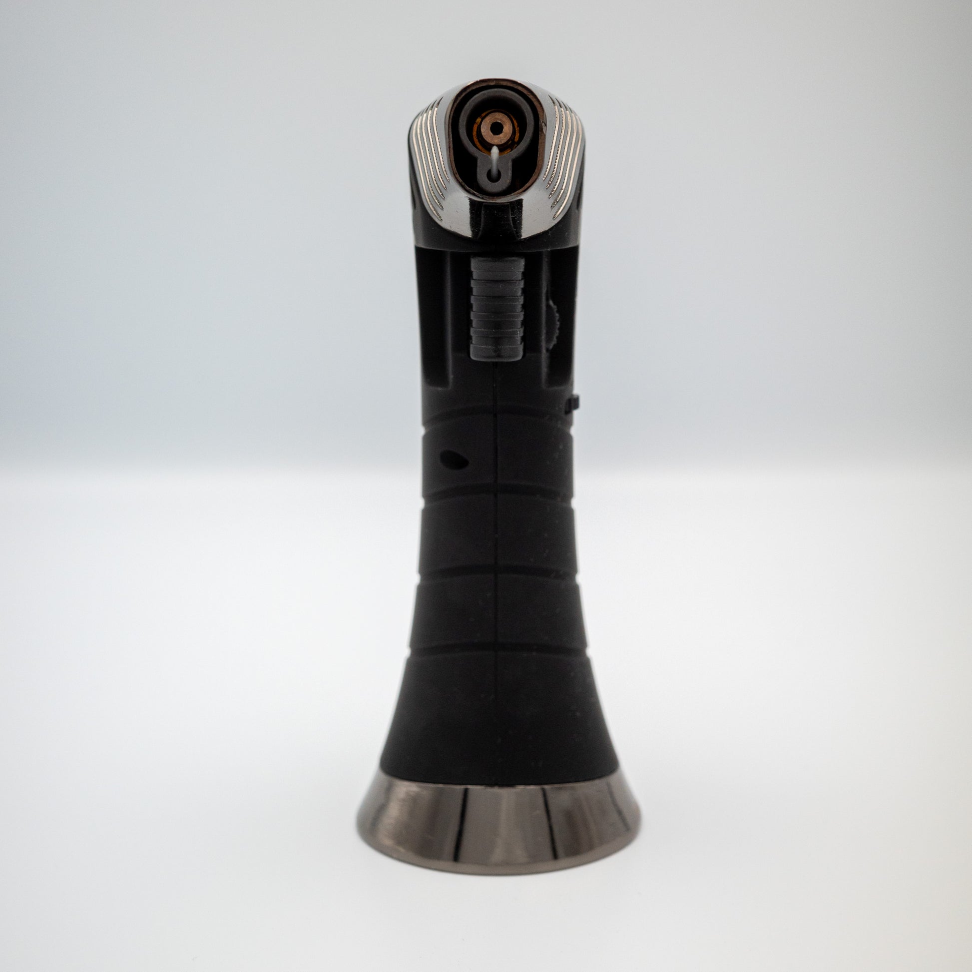 This high-quality table lighter exudes sophistication and functionality, designed to elevate any cigar experience. Its solid, weighty construction offers a premium feel in hand, complemented by a single jet flame for precise, consistent lighting.