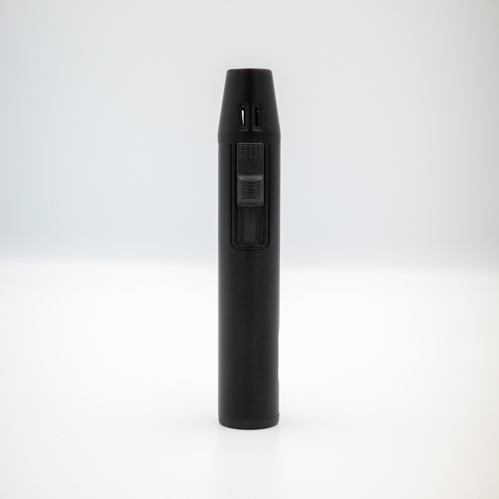 This sleek, cylindrical single-flame jet lighter combines portability with performance, featuring a durable metal body and a generous gas tank with a viewing window for easy fuel monitoring. Topped with a pointed nozzle, the lighter emits a focused, wind-resistant jet flame perfect for precision lighting. A high-quality sliding button ignites the flame with a satisfying, tactile feel, while the lightweight design makes it pocket-friendly. Available in eight striking finishes – vibrant red, classic white, timeless black, Mantis orange, yellow, Mantis Aqua, Klarna pink and a distinctive matte black – it balances modern style with everyday practicality.