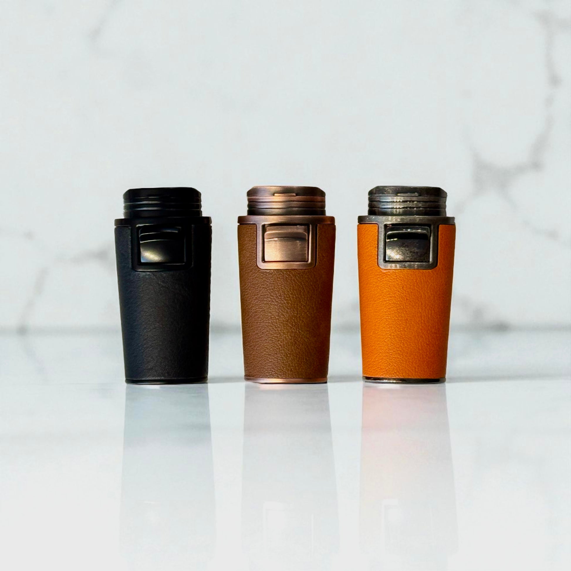 The Tauron Duo is a twin jet flame lighter that embodies both power and refinement. Its precision-engineered metal body is wrapped in technical leather, delivering a tactile richness that sets it apart from ordinary flame tools. Each press ignites two perfectly merged flames, merging performance with artistry.