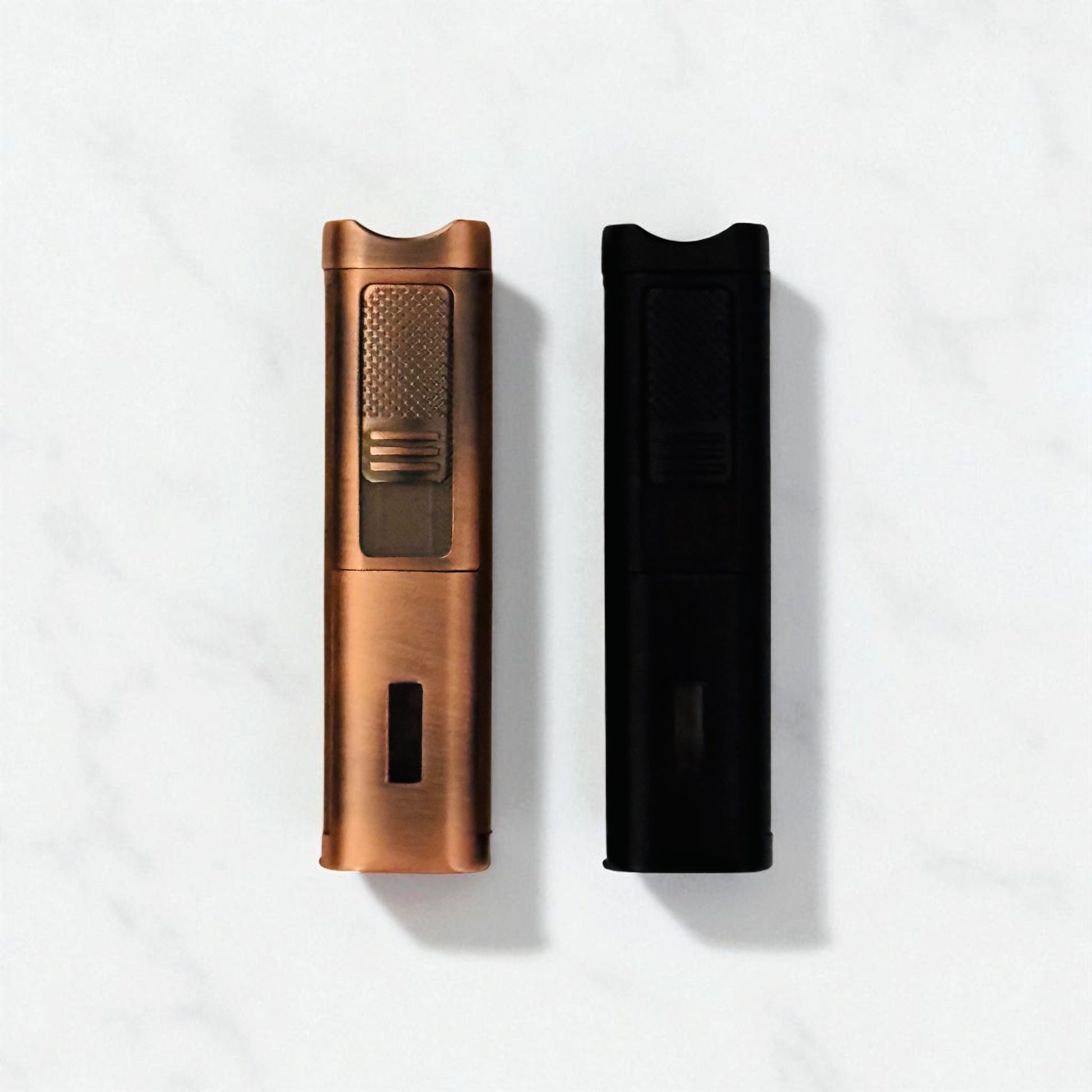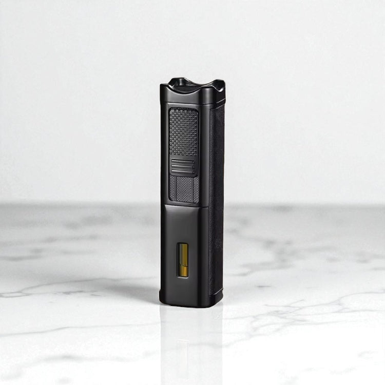 The Tauron Trio is a triple jet flame lighter that embodies both power and refinement. Its precision-engineered metal body is wrapped in technical leather, delivering a tactile richness that sets it apart from ordinary flame tools. Each press ignites three perfectly aligned flames, merging performance with artistry.